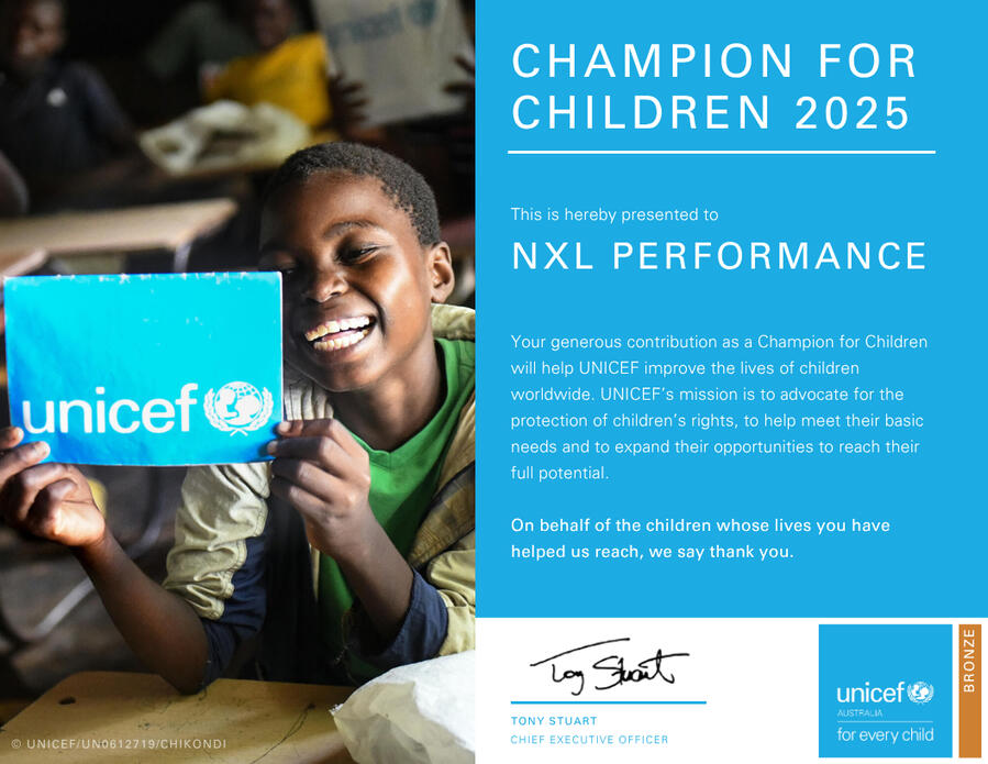 NXL Performance supports UNICEF Australia through the Champion for Children initiative.